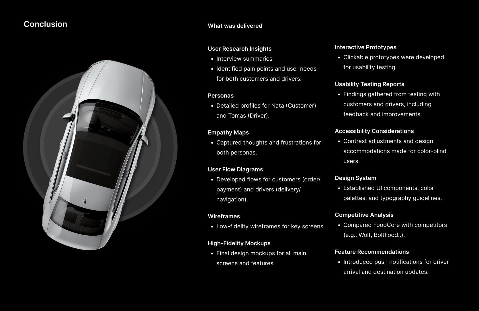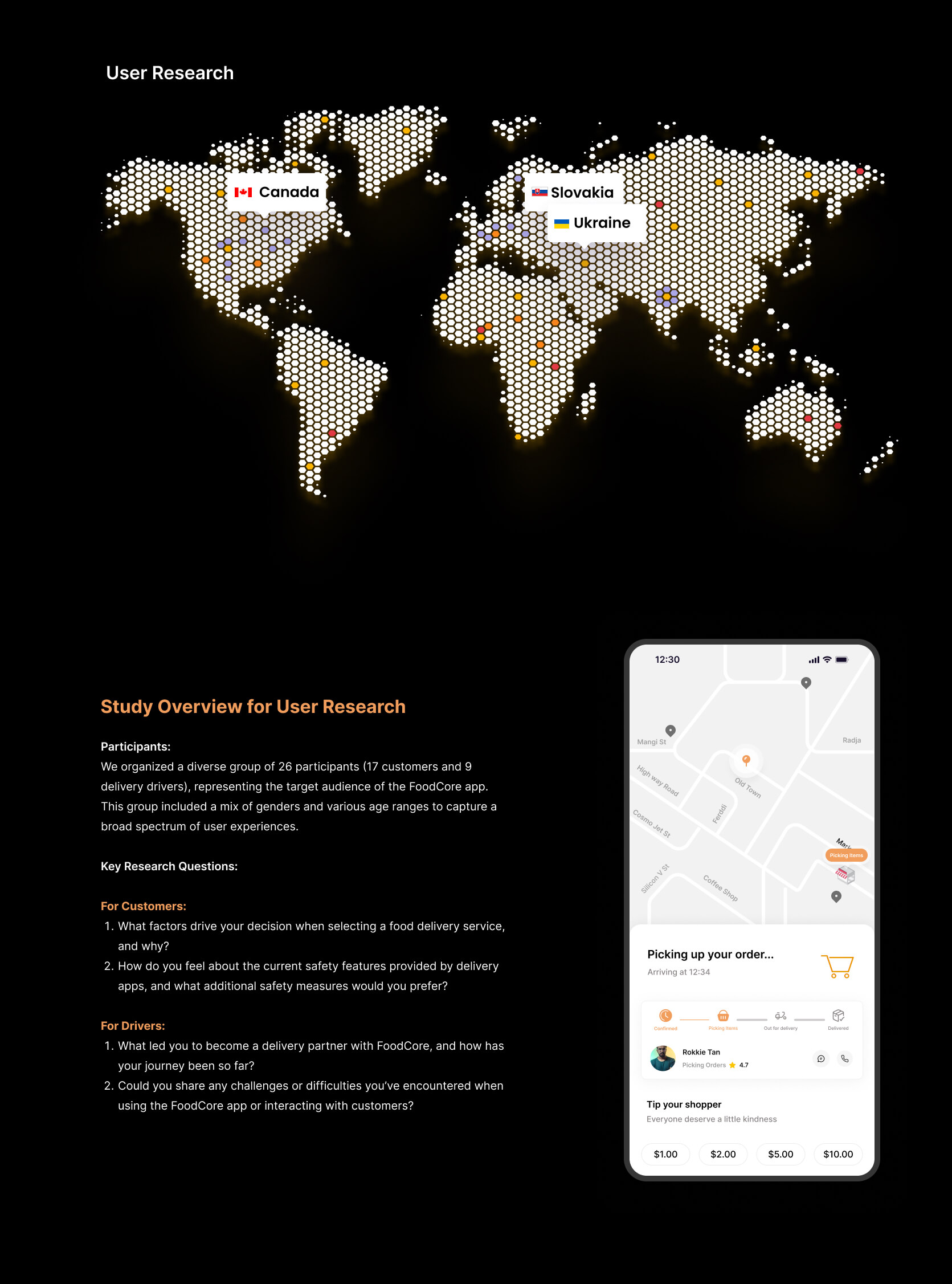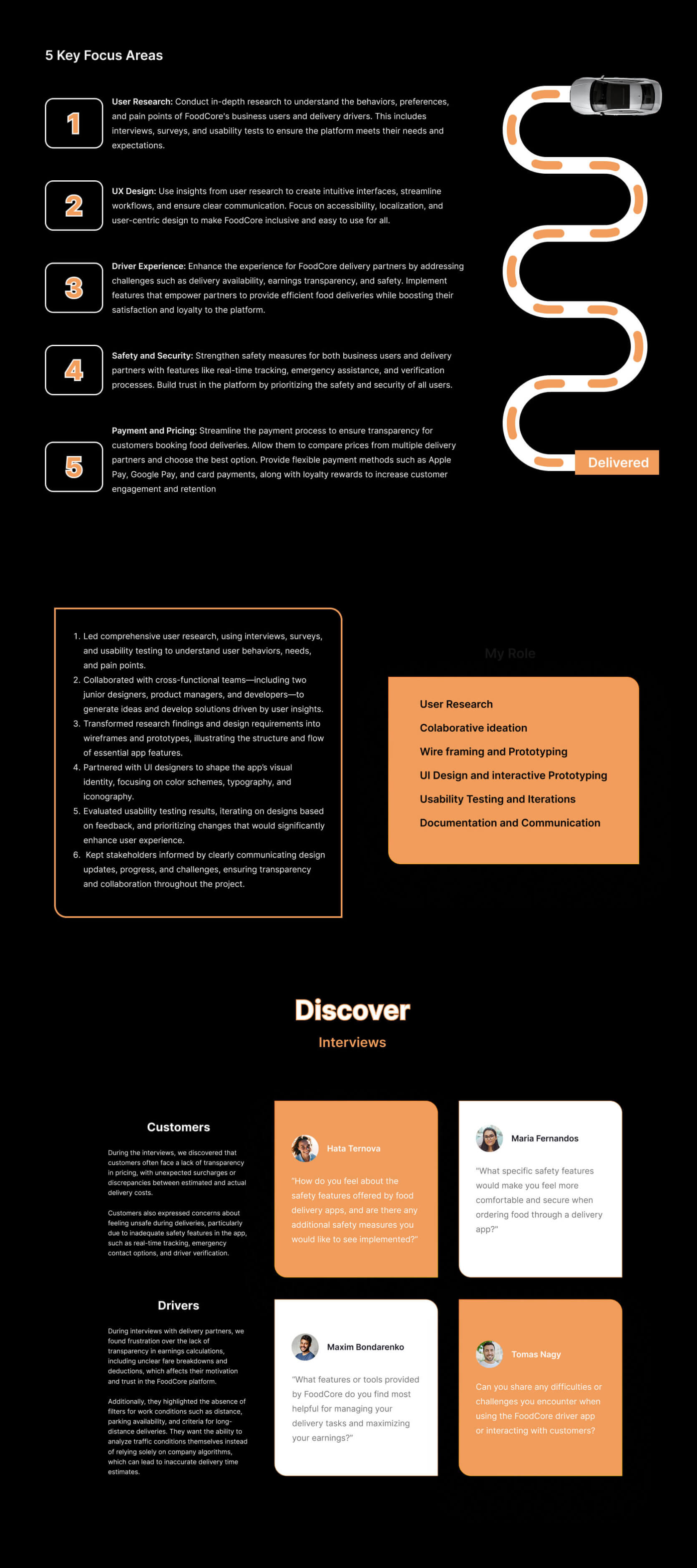 Conducted in-depth research to understand the behaviors, preferences, and pain points of FoodCore's business users and delivery drivers. This included interviews, surveys, and usability tests to ensure the platform meets their needs and expectations.