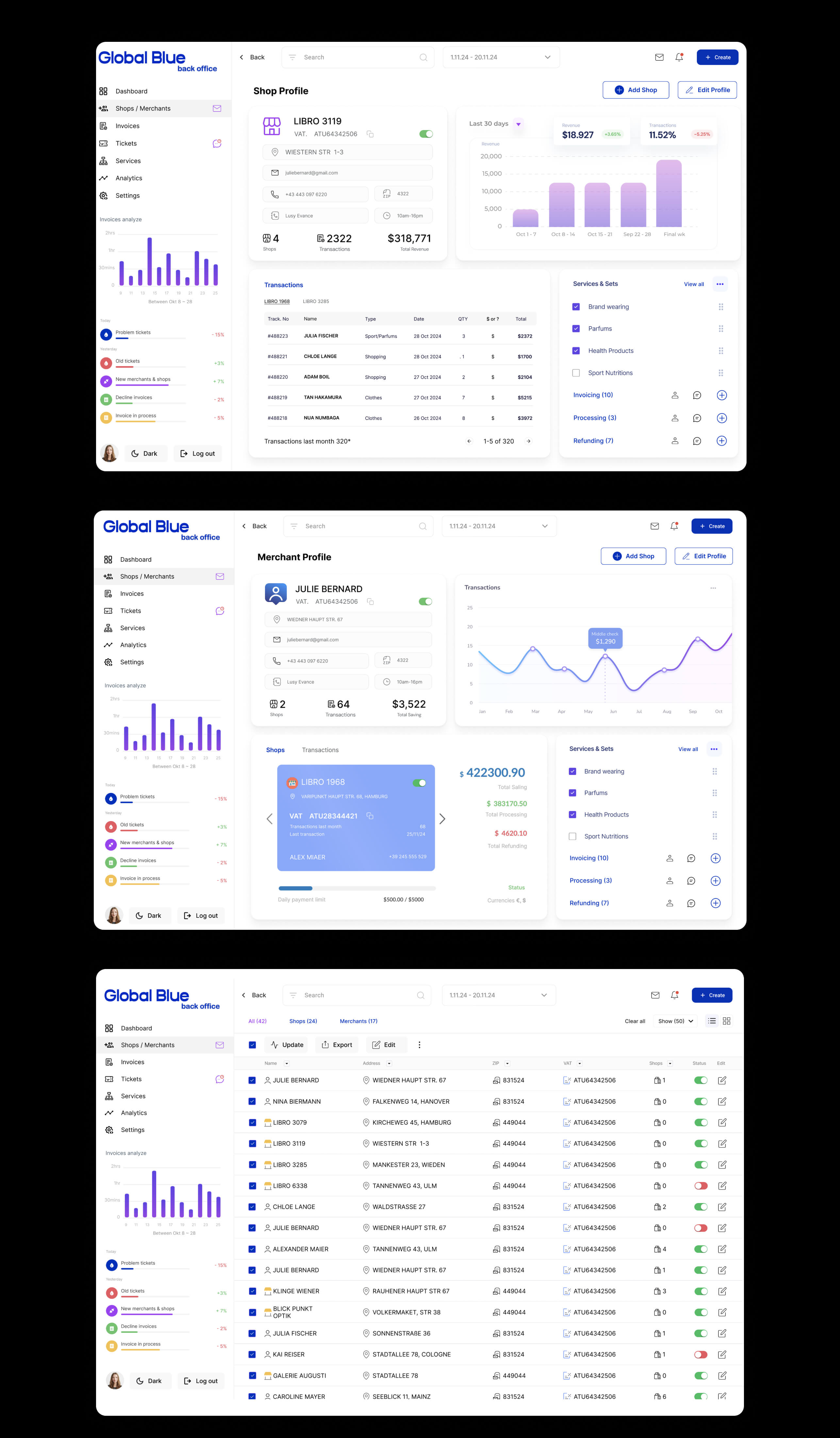 Redesign of Global Blue's legacy back-office system for managing merchants and shops in tax-free shopping services